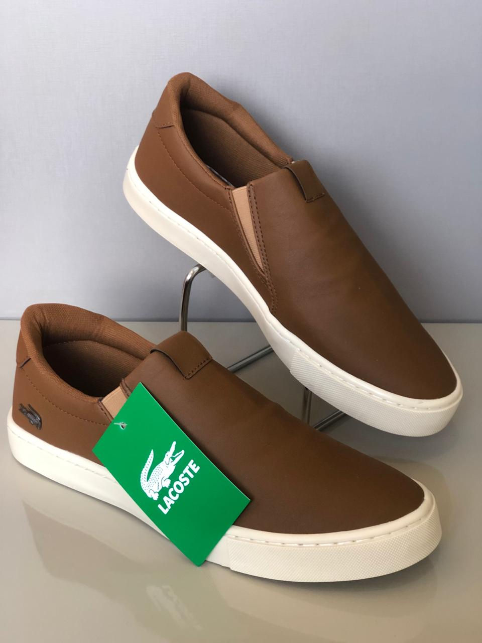 SAPATENIS SLIP-ON LACOSTE MARRON SEM CADARÇO
